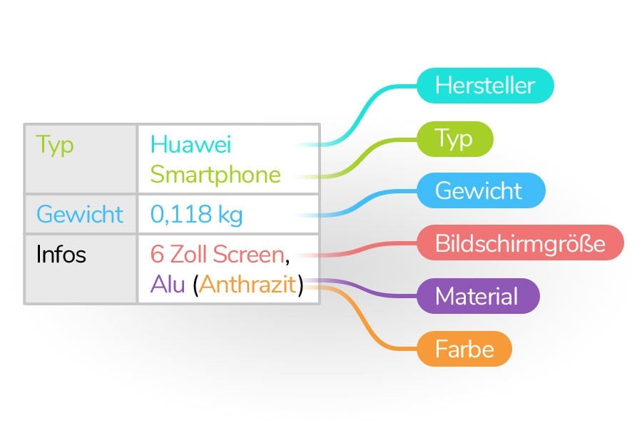 - Der DataNaicer erkennt Begriffe und Zusammenhänge und versteht den Kontext von Produktattributen.