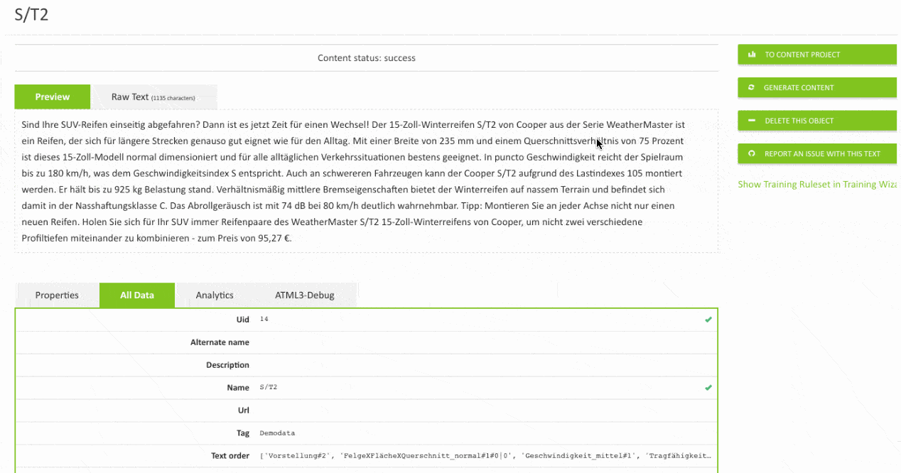Disponi già di una banca dati ben curata con tutte le caratteristiche di tutti i prodotti? Congratulazioni – allora sei in vantaggio sul 90% dei tuoi concorrenti. Perché da una tale banca dati si possono creare sistematicamente dei content come i testi pubblicitari e le descrizioni di prodotto – anche per vasti assortimenti di prodotto e in diverse lingue.