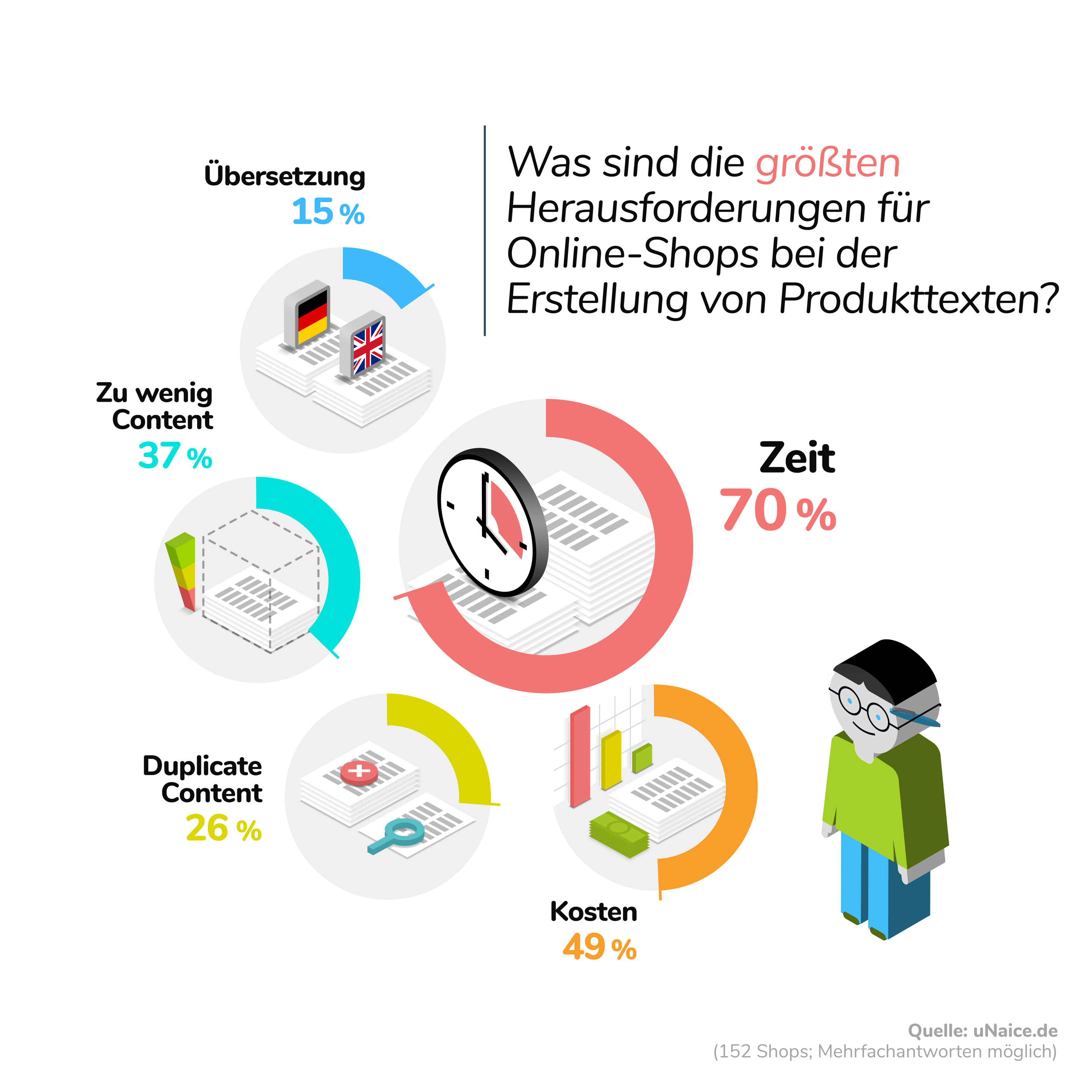 In particolare, preoccupa il fatto che circa il 30 % dei clienti restituisce la merce per non conformità alla descrizione di prodotto. Un fatto che già da solo costituisce un ottimo motivo per dare descrizioni del prodotto buone e informative – come risulta anche dal sondaggio che riportiamo.